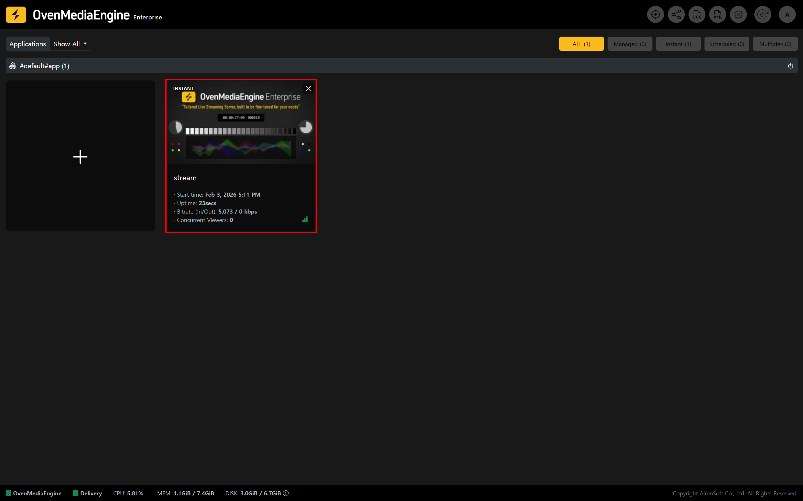 6. Open the OvenMediaEngine Enterprise Web Console in your browser using the following: