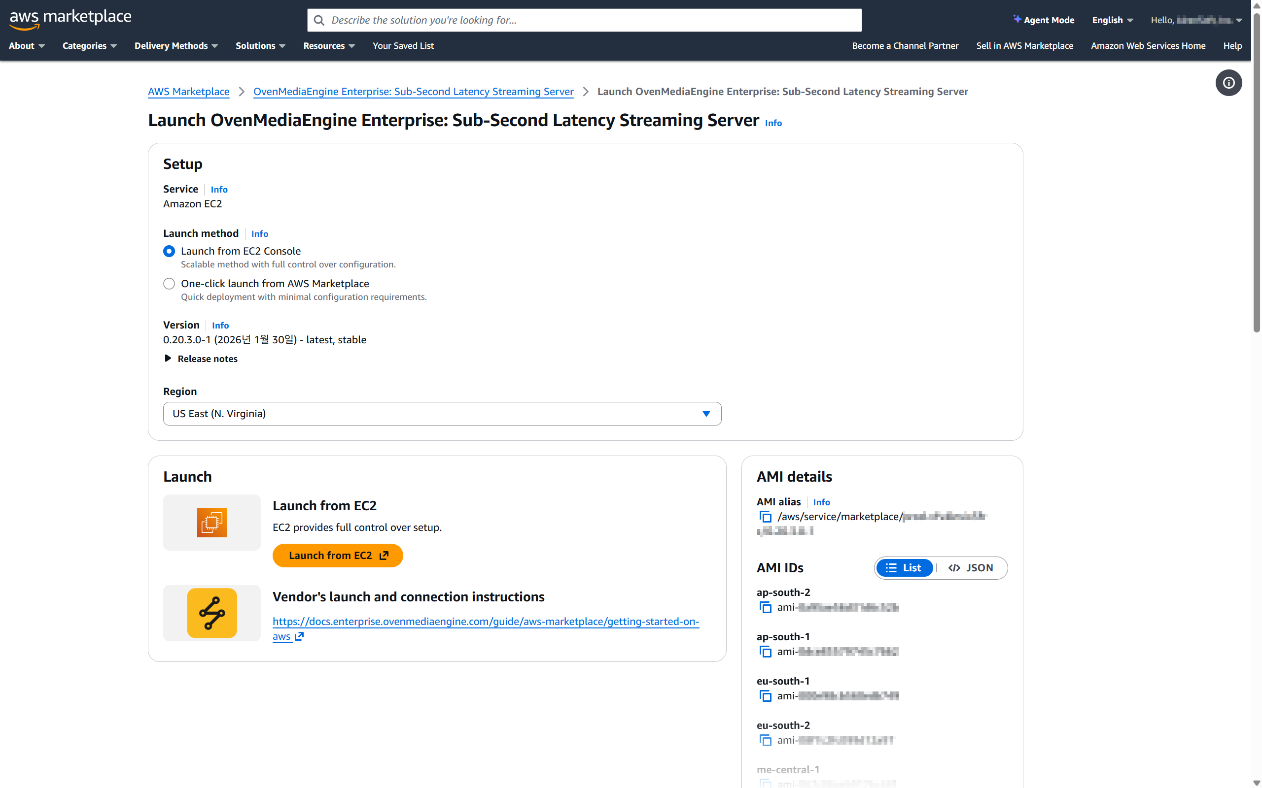 * After subscribing, you can deploy and run OvenMediaEngine Enterprise on Amazon EC2. For detailed instructions, please refer to the [AWS Buyer's Guide](https://docs.aws.amazon.com/marketplace/latest/buyerguide/buyer-getting-started.html).