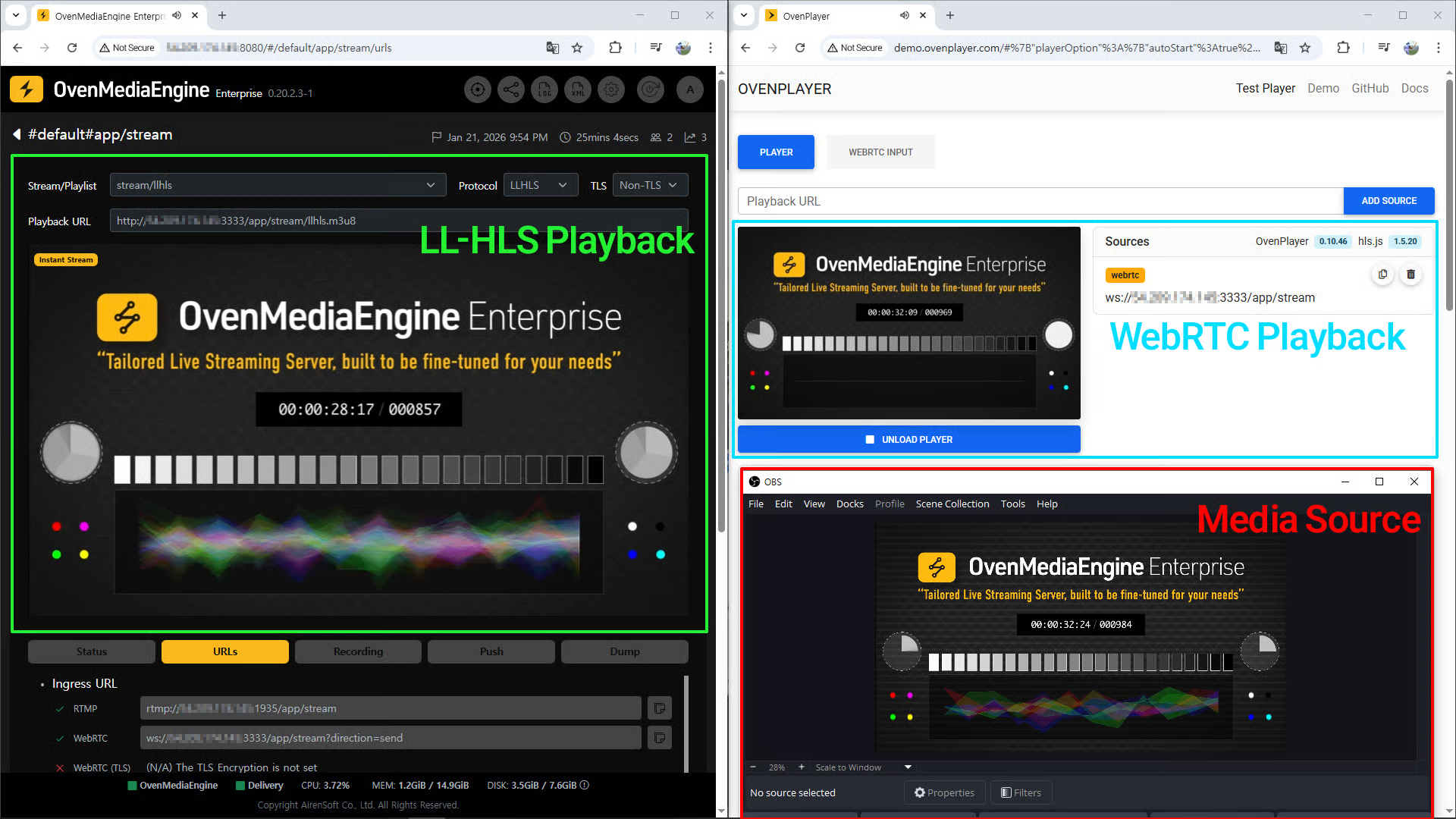 * When testing a **TLS** URL, use: [**https://**&#x64;emo.ovenplayer.com](https://demo.ovenplayer.com/)