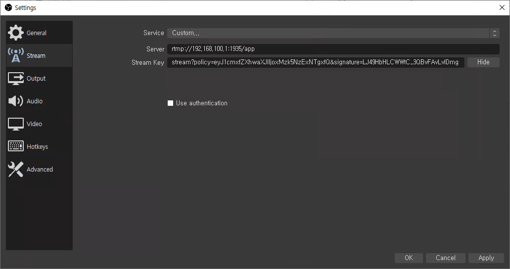 scheme://domain.com:port/app/stream?policy=<>&signature=<>