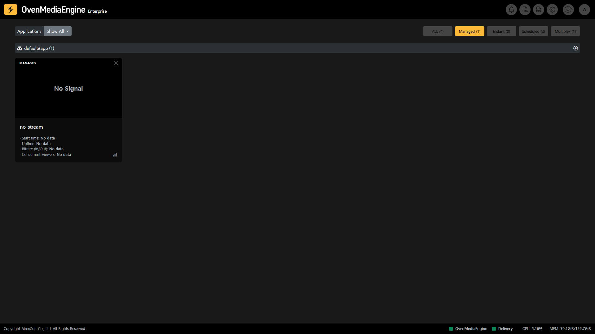 Managed Stream refers to the Stream List in OvenMediaEngine Enterprise where users pre-specify stream names and use them.