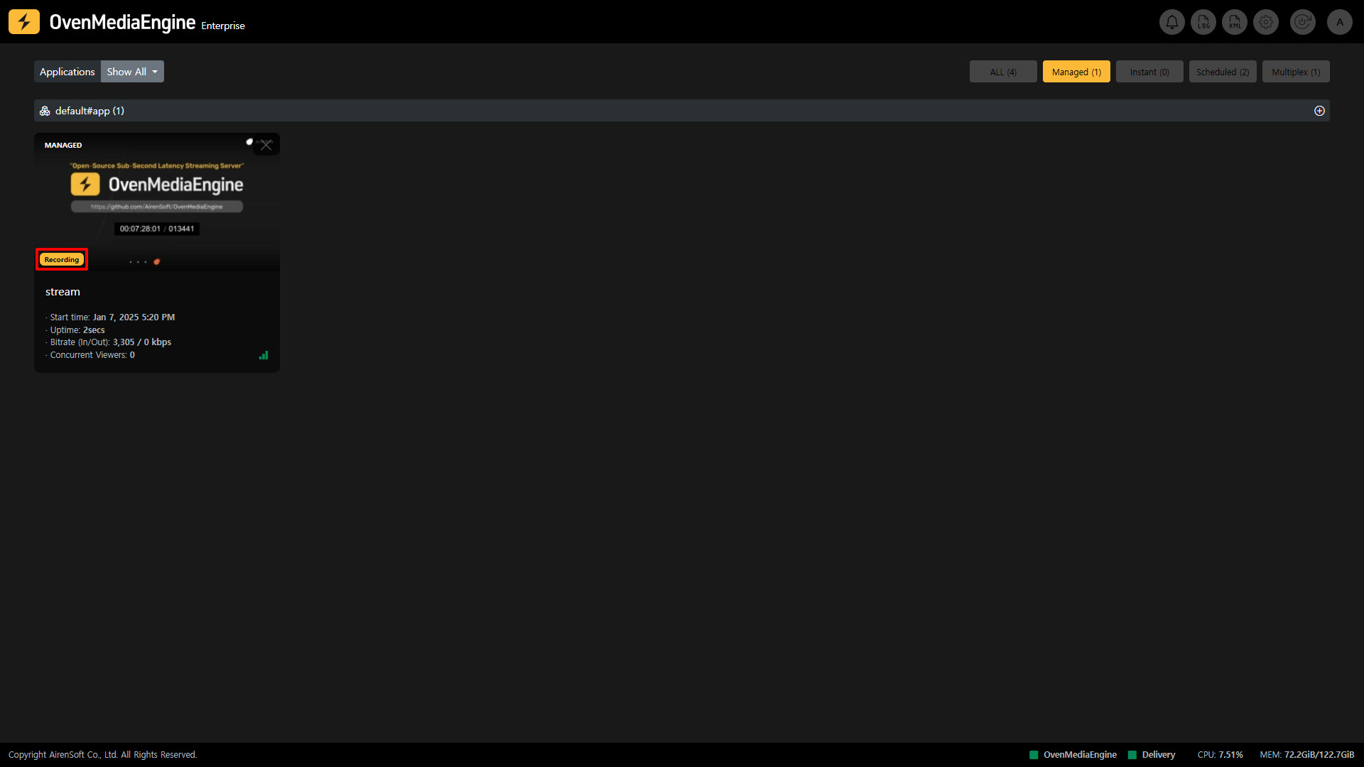 Recording is a function that records when the stream is Live. When the stream is recording, you can see at a glance that it is recording through the Recording marking in the Stream List.